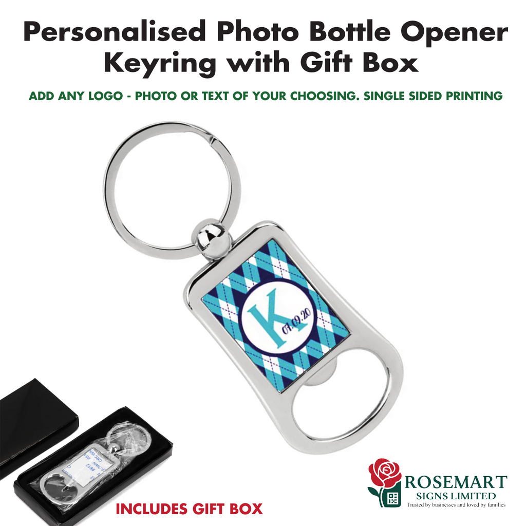 Personalised Photo Bottle Opener Keyring with Gift Box